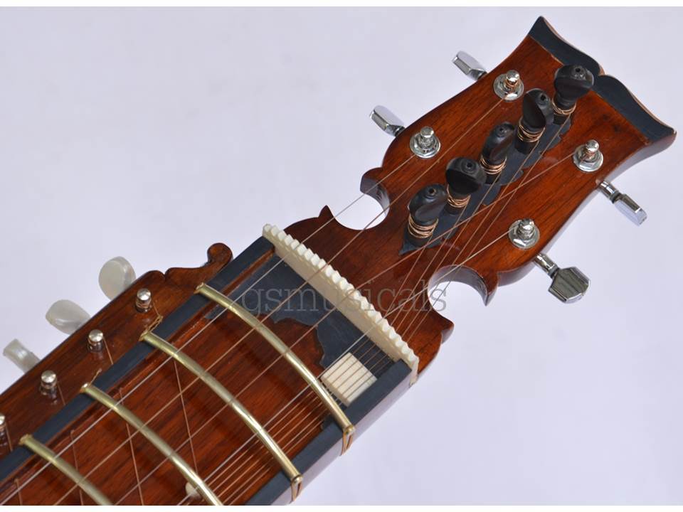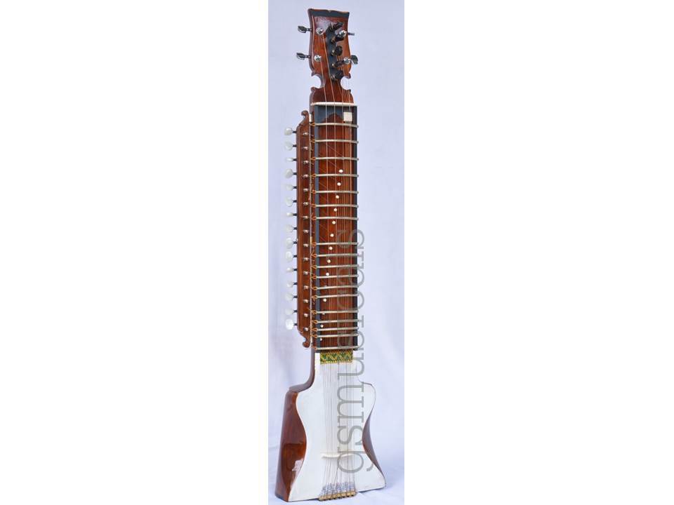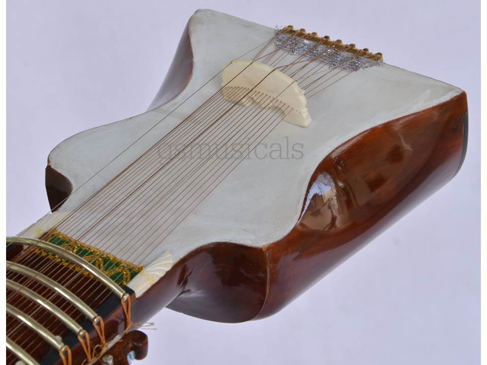 Handmade product, Made from well-seasoned wood and softly decorated by celluloid! Made in 2 piece of wood with good joint worksGreat finish, exactly balanced and clean work with beautifully Guitar machine heads for main string & sympathetic strings You will get the finest tonal quality, long sustaining sound.