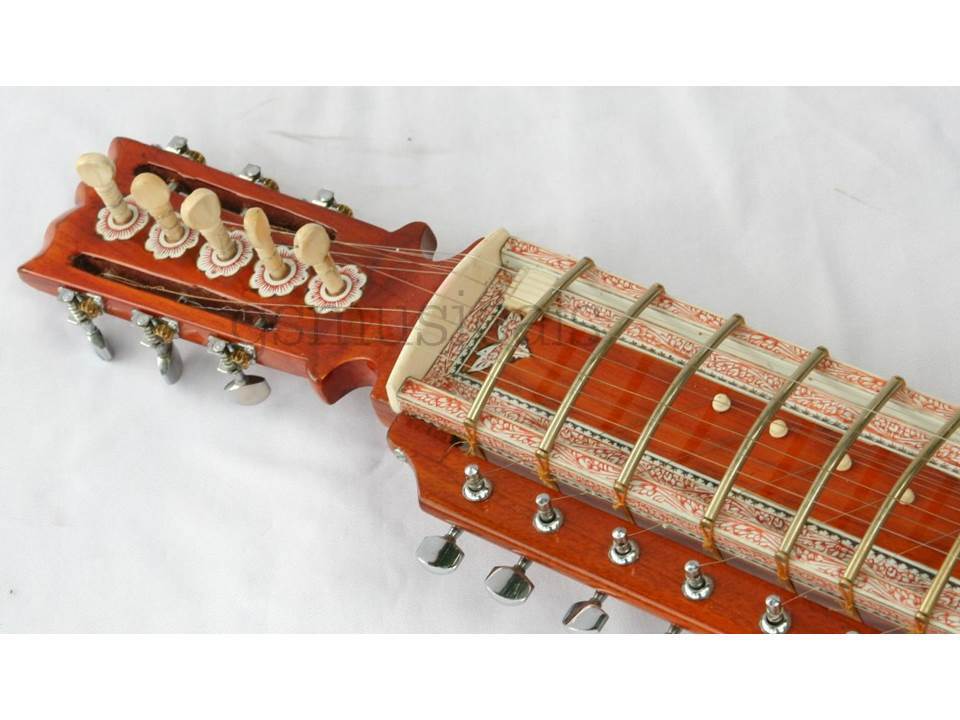 Handmade product, Made from well-seasoned wood and softly decorated by celluloid! Made in ONE piece of wood with good worksGreat finish, exactly balanced and clean work with beautifully Guitar machine heads for main string & sympathetic strings You will get the finest tonal quality, long sustaining sound. comes with Bow & rosin