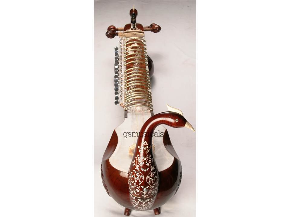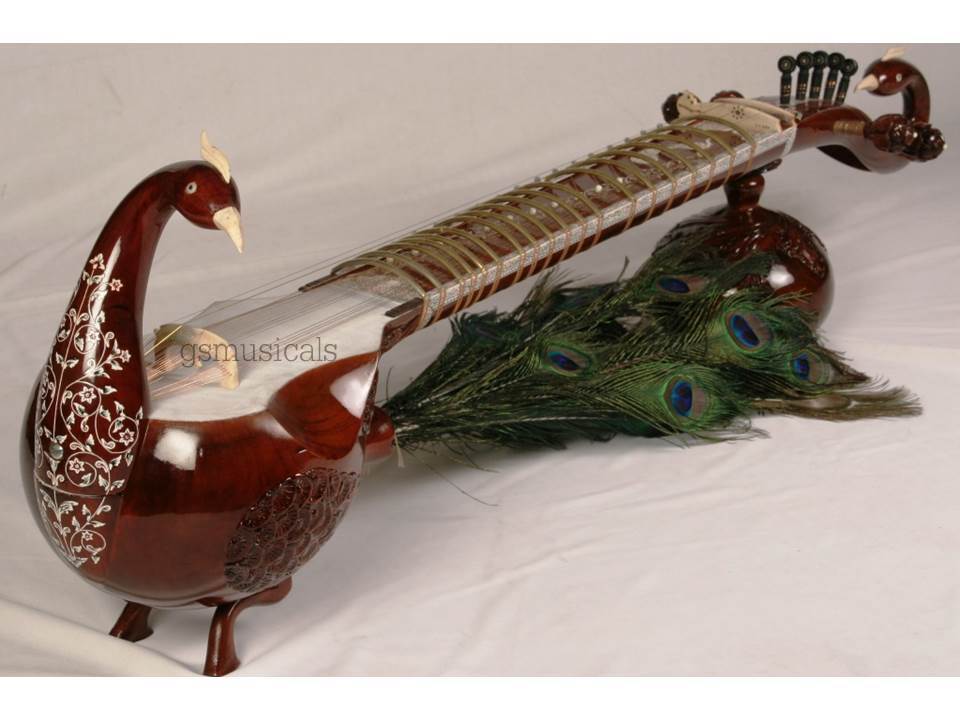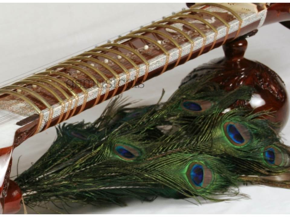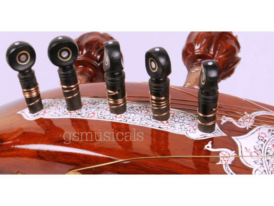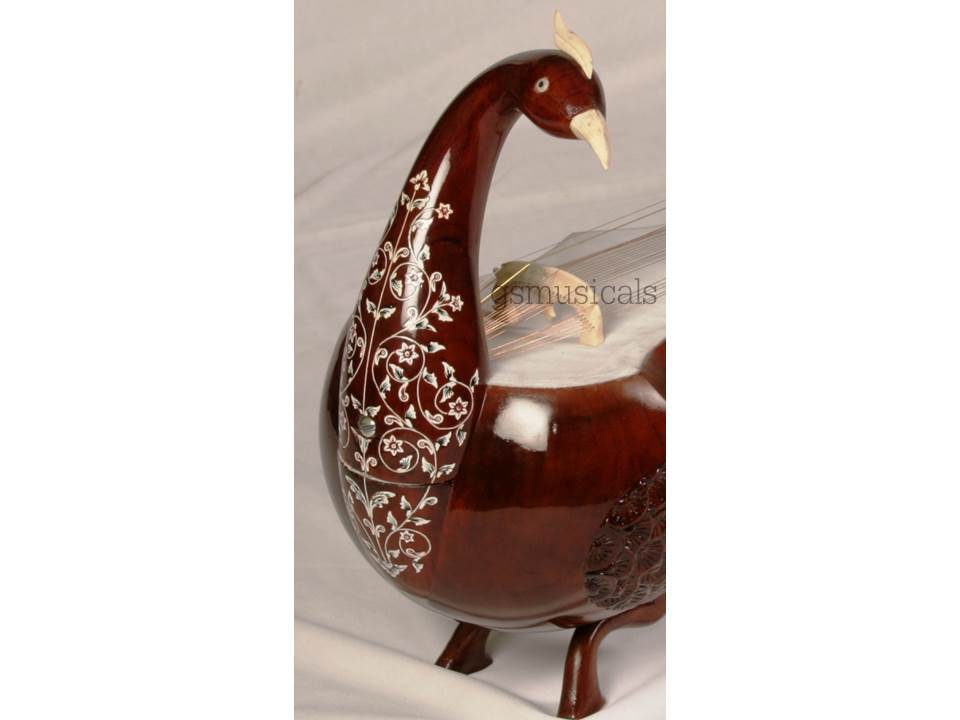 Handmade product, the beautiful instrument you will fall in love with made from well-seasoned wood and decorated by inlay of celluloid in very artistic manner! Great finish, exactly balanced and clean work with beautifully Guitar machine heads for sympathetic strings You will get the finest tonal quality, long sustaining sound.