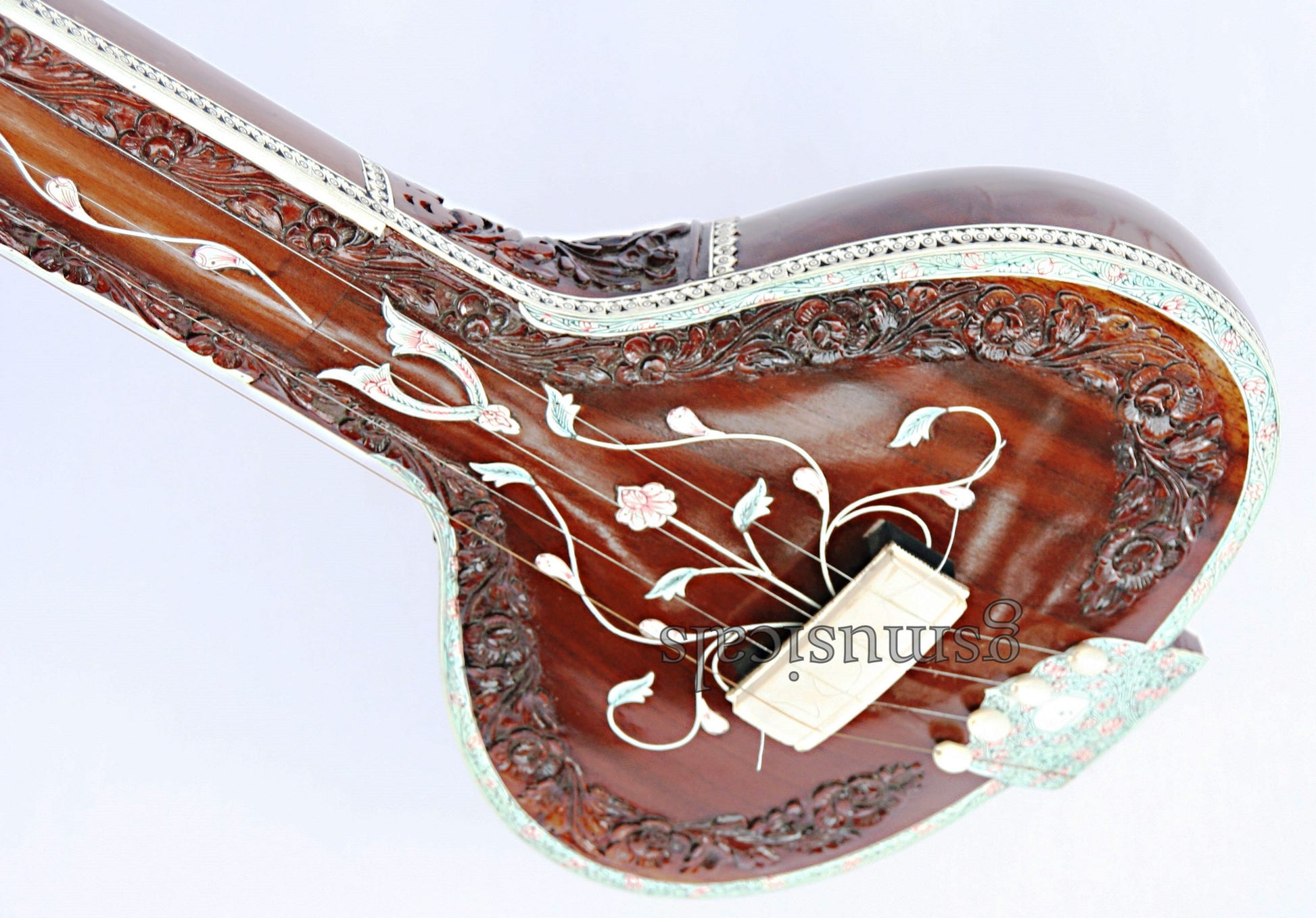 Handmade product, TRAVEL TANPURA is all wooden body made from well-seasoned tuna ceddra wood,Ideal for traveling Overall workmanship of this TRAVEL TANPURA is good, It has sustaining sound and fine tonal quality!!!! Fine craftsmanship, completely decorated with inlay of celluloid TRAVEL TANPURA comes with Special Addition It is in built with peigeo pick up for greater effect. Which means this TRAVEL TANPURA can be amplified with a single output jack socket as per your requirement