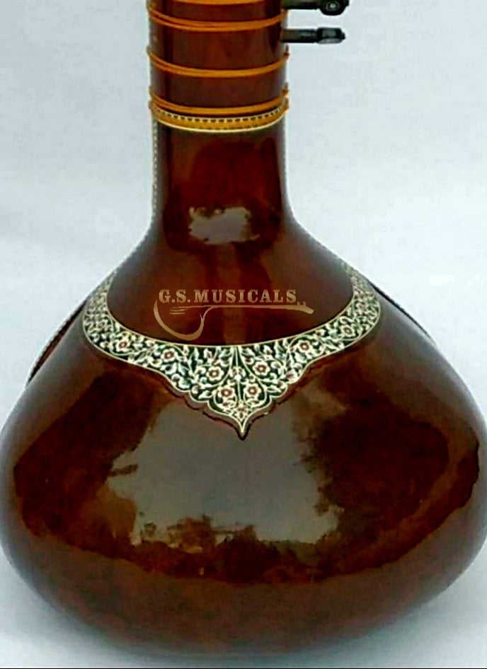 Handmade product, A new Professional Standard full size sitar, with a complete new outstanding look total different from others with special Natural walnut finish Sitar decorated with simple & antique manner this sitar is the Made from well-seasoned tun wood it has sustaining sound and fine tonal quality!!!! Fine craftsmanship, sitar comes with Special Addition: It is in built with peigeo pick up for greater effect. Which means you can play this sitar just like any other sitar and at the same time it can be amplified with a single output jack socket as per your requirement