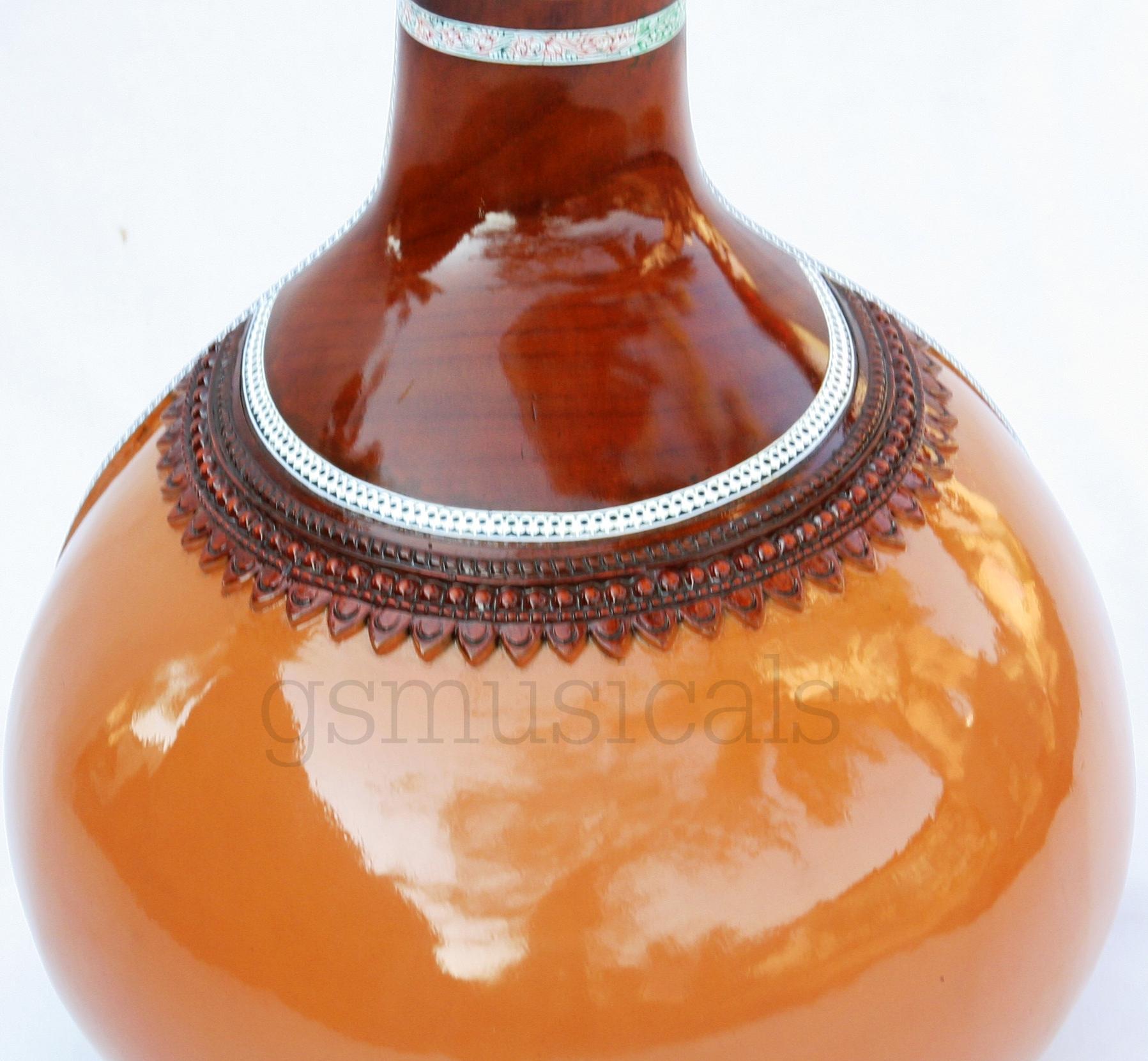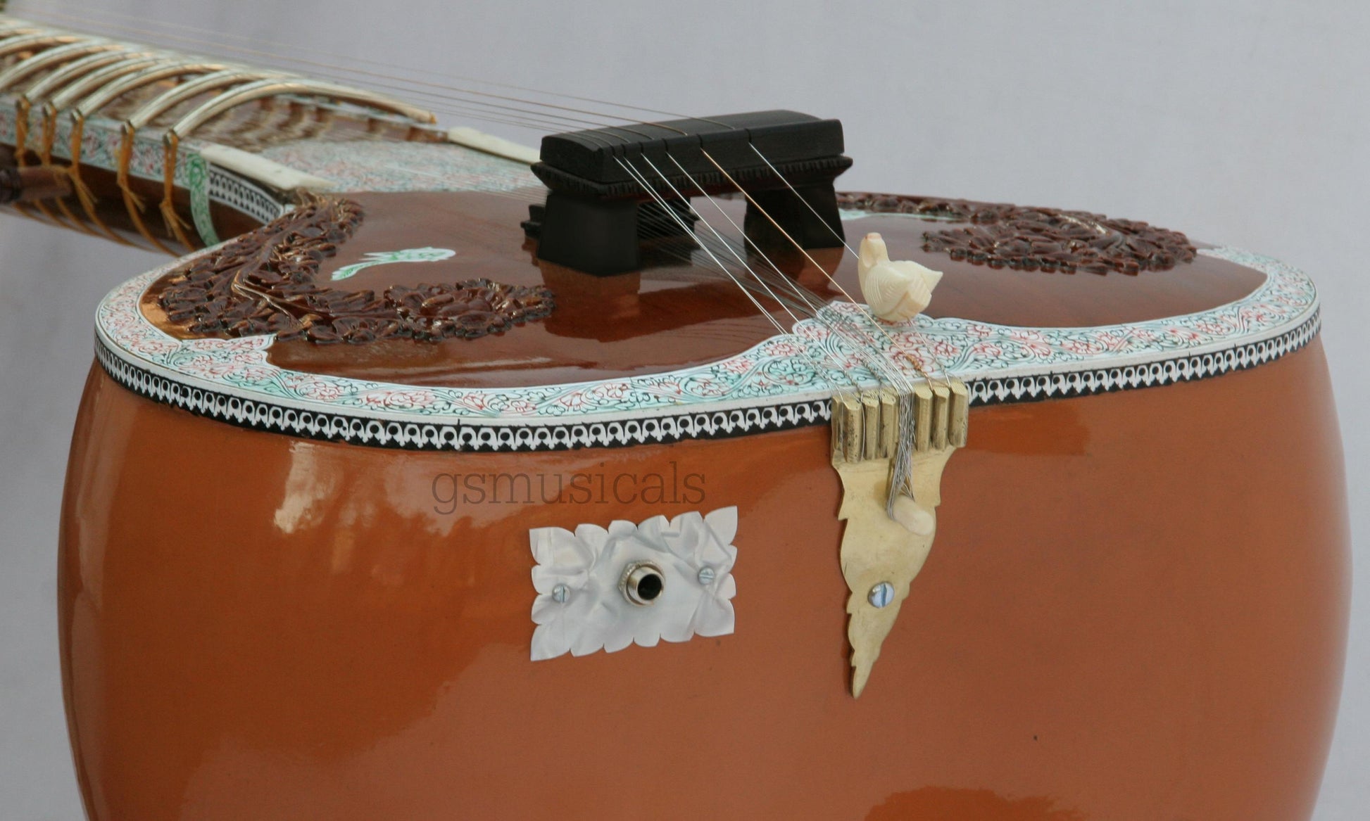 This sitar is the made from well-seasoned tun wood it has sustaining sound and fine tonal quality!!!! Fine craftsmanship, sitar comes with Special Addition,It is in built with peigeo pick up for greater effect. Which means you can play this sitar just like any other sitar and at the same time it can be amplified with a single output jack socket as per your requirement