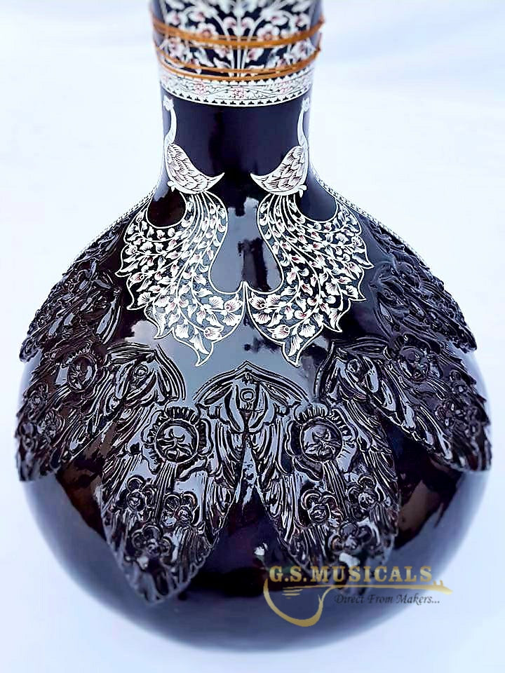 Handmade product, one of the most beautiful Instruments in the world of musical Instruments, Made from well-seasoned tunna cedara wood with exclusive Hand Carving on Wood & pen carving on celluloid! Great finish, handmade decoration on celluloid in a very artistic and antique manner, exactly balanced and clean work with beautifully designed bird head for main string