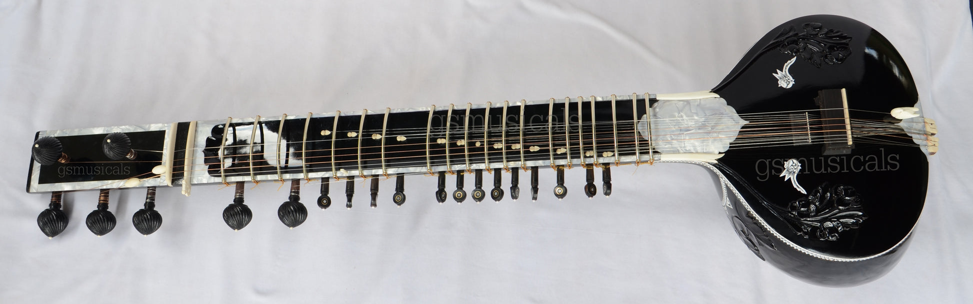 Handmade product, A new Professional Standard full size sitar, with a complete new outstanding look total different from others with special Black finish Sitar decorated with simple & antique manner