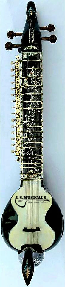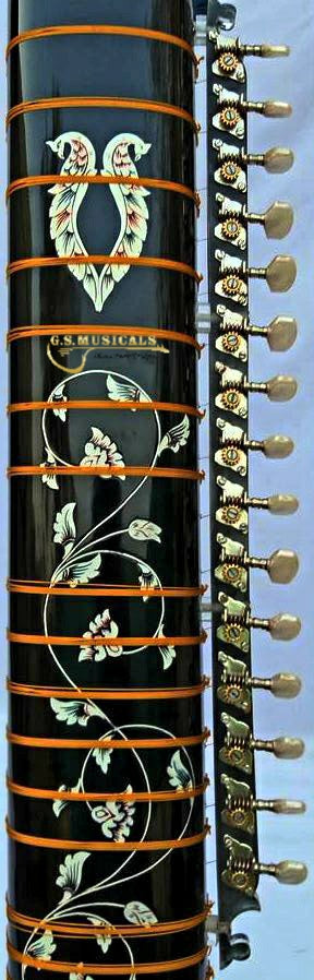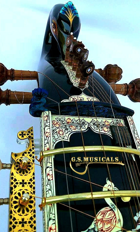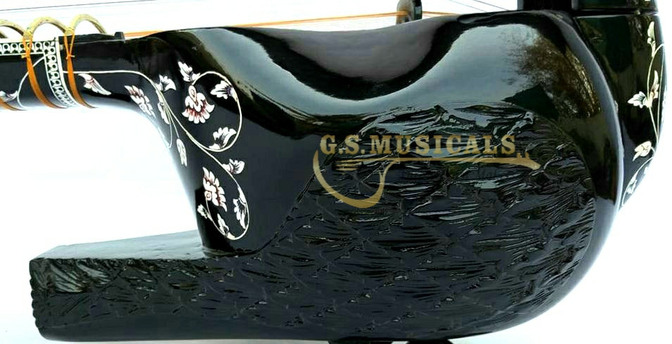 Handmade product, the beautiful instrument you will fall in love with made from well- seasoned wood and decorated by inlay of celluloid in very artistic manner! Great finish, exactly balanced and clean work with beautifully Guitar machine heads for sympathetic strings You will get the finest tonal quality, long sustaining sound.